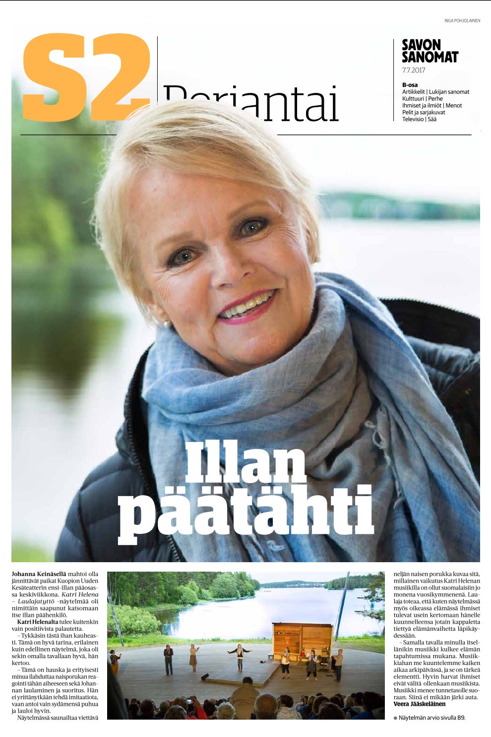 Katso tästä ensi-iltatunnelmat Kuopion Uuden Kesäteatterin Katri Helena -Laulajatyttö -ensi-illasta, jossa oli itse päähenkilö mukana!!!